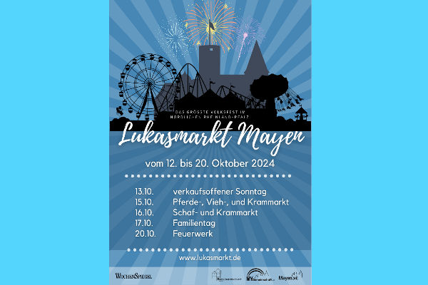 Mayen. Vom 12. bis 20. Oktober steht Mayen im Zeichen des größten Volkfestes im nördlichen Rheinland-Pfalz: Dem Lukasmarkt!