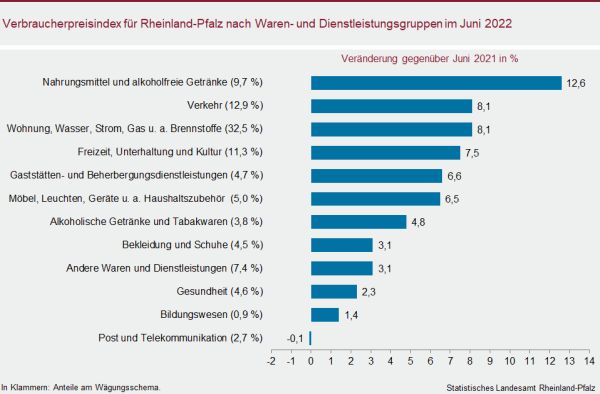 Der Verbraucherpreisindex in Rheinland-Pfalz lag im Juni 2022 um 7,1 Prozent über dem Niveau des Vorjahresmonats.