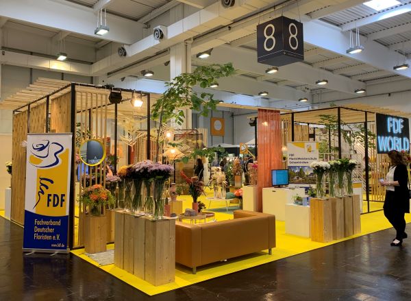Aktuelle Floristik-Trends, blumige Design-Kollektionen, innovative Gestaltungsideen für neue Top-Seller im Fachhandel und nachhaltige Produkte für die Branche zeigte der Fachverband Deutscher Floristen e.V./FDF in seiner „FDF-World kompakt“ auf der IPM Summer Edition in Essen. Die mit einem Gelb leuchtendem Teppich ausgelegte florale Erlebnis-Welt des FDF in Halle 8 wirkte als sommerliches Inspirationsareal für alle Sinne. Die markante Fläche mit Trend-Arealen, Live-Workshops, Blüten-Lounges, Showrooms und Produkt-Galerien war von den FDF-Top-Designern Manfred Hoffmann, Düsseldorf, und Oliver Ferchland, Magdeburg, inszeniert worden. Floristmeister und FDF-Referent Stefan Prinz, und Roland Ferdinand, bester NewComer im FDF NRW, zeigten in Live-Workshops ideenreiche Gestaltungen mit Chrysanthemen und neue Designs mit dem Top-Seller Schnitthortensie. Während die Kultblume Chrysantheme in den aktuellen Trend-Designs aus dem FDF-Kalender 2022 präsentiert wurde, zeigten die Designer in einem mediterranen Flower Shop, wie unterschiedlich und vielseitig sich Schnitt-Hortensien zu variationsreichen Sträußen im Blumenfachhandel verarbeiten  lassen.